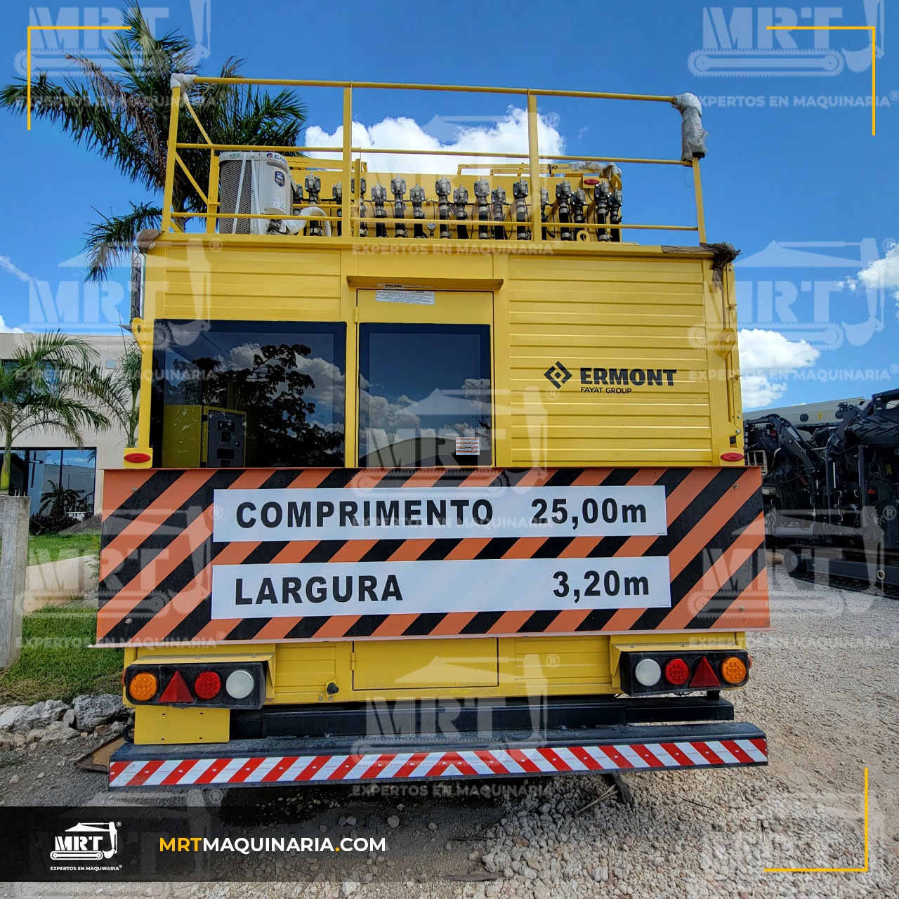- Portabilidad: Chasis móvil único (o bipartido en versiones antiguas) sobre neumáticos, montaje sin grúa y sin cimentación compleja.